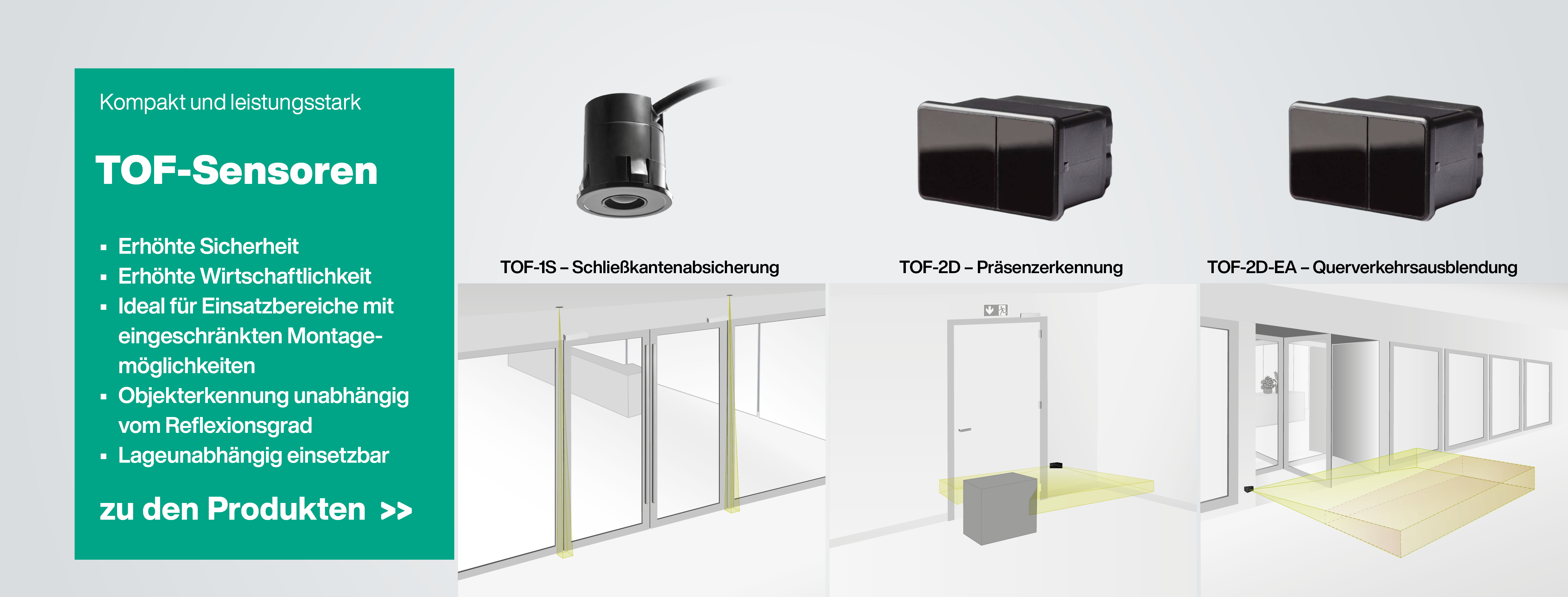 Das Sortiment wird ständig erweitert: Messende Radarsensoren RMV stellen die Signale für eine intelligente Öffnung von Türen und Toren bereit.