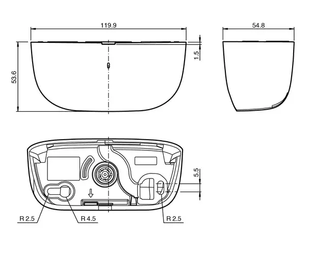 - Erfassungsbereich: 2 m x 4,5 m (TxB) bei 2,2 m Montagehöhe und 60° Neigungswinkel